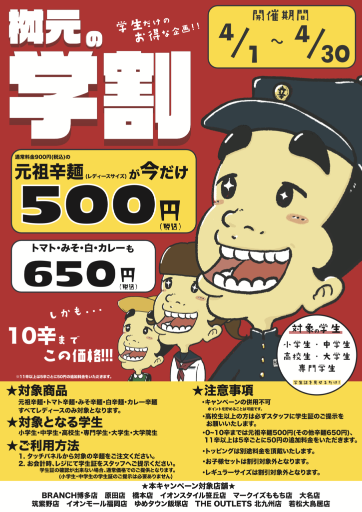 ※ポスター表記として筑紫野店・大名店も入っておりますが、2店舗は対象外となります